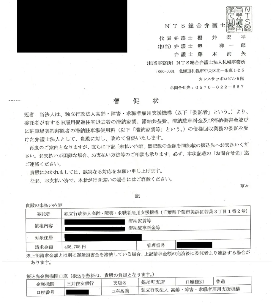 NTS総合弁護士法人はこれらの企業や債権回収会社から依頼を受けて、借金の回収のために代理人として通知を出したり、電話をしてきています。