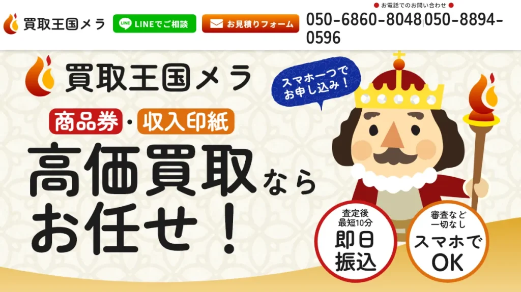 買取王国メラは、先払い買取という闇金まがいの業者です。商品券や収入印紙の写真を送るだけで現金を振り込み、給料日前後になると、受け取った金額の約2倍に相当する商品券や収入印紙を送るよう要求します。期日までに支払えないと職場や家族などへ取り立... -