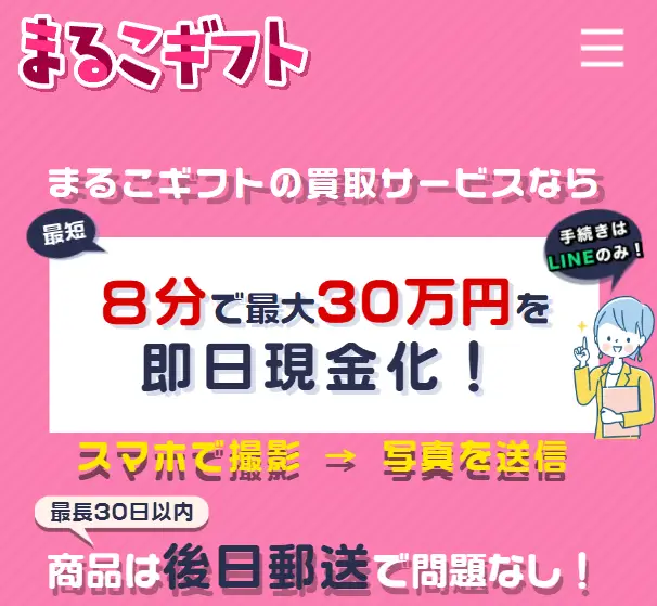 まるこギフトは闇金まがいの先払い買取業者です。商品写真を送るだけで現金を受け取れる仕組みですが、給料日には元金の約2倍もの返済を要求されます。支払いが遅れると、勤務先や家族への執拗な取り立てが始まるリスクがあります。当事務所にはまるこギフ... -