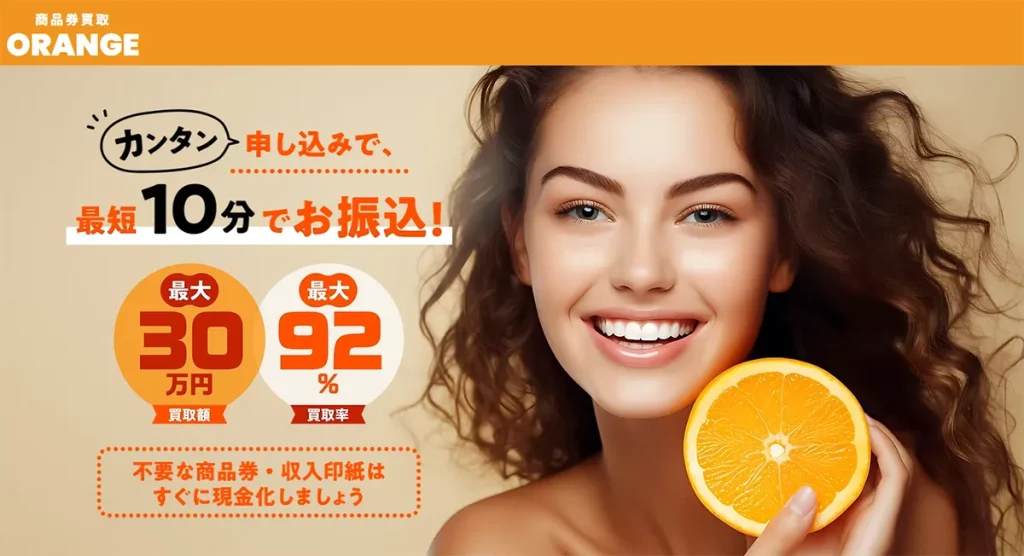 先払い買取オレンジは、JVAギフトカード、全国百貨店共通商品券、収入印紙などを対象とした買取り業者を名乗る業者です。「買取」と称していますが、その実態は法外な利息を要求するヤミ金融と同等の行為に他なりません。 「ギフト券を撮影して送るだけで... -