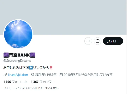 青空BANKの特徴 業者名青空BANK連絡手段LINE、X集客手口個人融資を装ってX(Twitter)等で集客当事務所の解決実績有り >>闇金被害の無料相談はこちら 貸付けた元金に対して、7日で2倍にも及ぶ返済を要求する場合がある。 支払いが遅れると、本人に対す... -