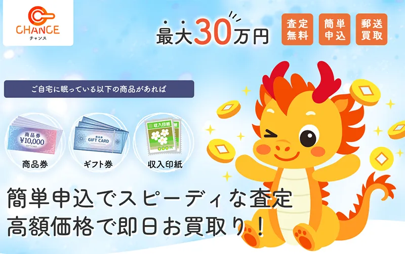 先払い買取チャンスは、商品券やギフトカード、収入印紙などを対象とした先払い買取業者です。公式サイトで利用者を募集し、連絡はLINEや電話で行うため、誰でも簡単に申し込める仕組みになっています。