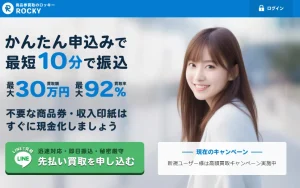 | 買取商品 | 商品券、QUOカード、建退共証紙、航空系株主優待権、JR・私鉄株主優待券、ビール共通券、切手、収入印紙、テレホンカード |