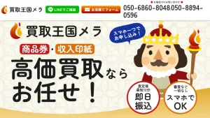 | 買取商品 | 商品券、信販系ギフトカード、収入印紙 |