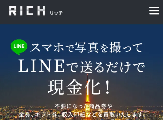 リッチは利用者から商品券やギフトカード、収入印紙の写真を送らせ、その形だけの査定の後、すぐに現金を振り込みます。
