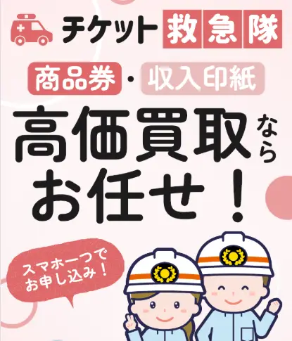 | 買取商品 | 全国百貨店共通商品券、収入印紙 |