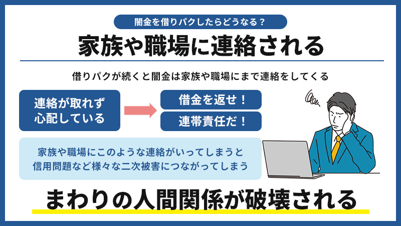 借りパク状態が続くと、闇金はあなたの家族や職場に直接連絡を取ってきます。