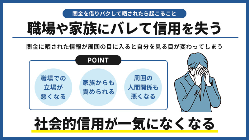 「闇金から借金している人」というレッテルを貼られ、信用を失うでしょう。