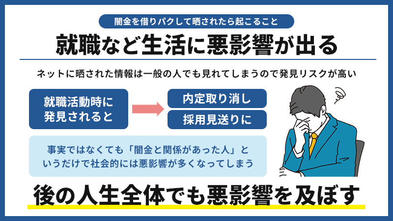 たとえ内容が事実と異なっていたとしても、「闇金と関係があった人」という印象を与えてしまい、内定取り消しや採用見送りにつながる可能性も。
