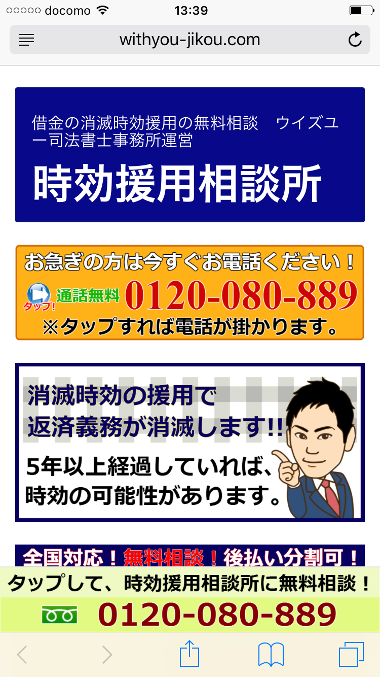 【任意整理専門サイト】は こちら借金や家賃、医療費などの時効援用についてまとめたサイトです。債権者や裁判所、債権回収会社から通知が届いたときに参考にしてください。