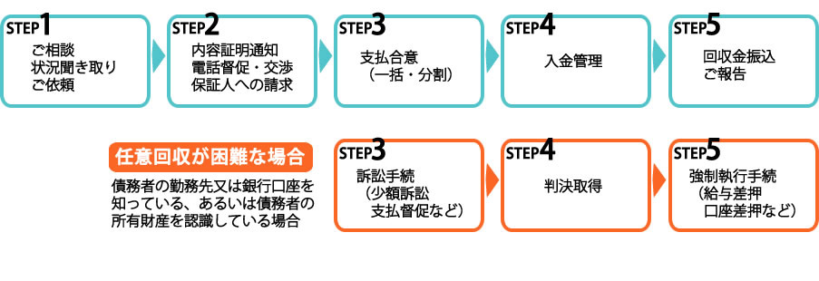 ※訴訟及び執行手続きを希望される場合は、費用は別途必要となります。